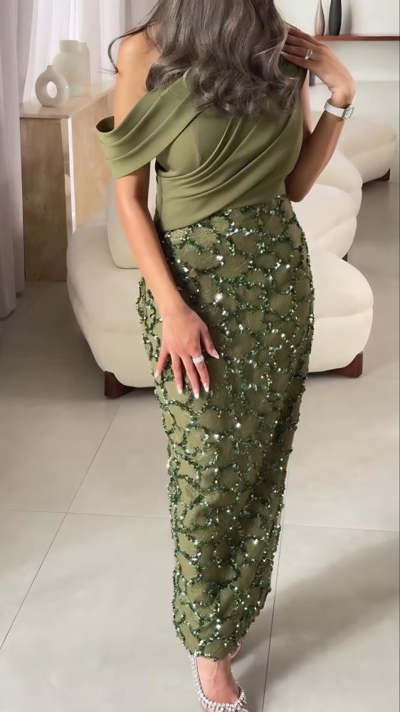 فستان يخطف الأنظار، يجمع بين الفخامة والعصرية، مناسب للسهرات والمناسبات اللي تحبي تظهري فيها بكامل أناقتك.
