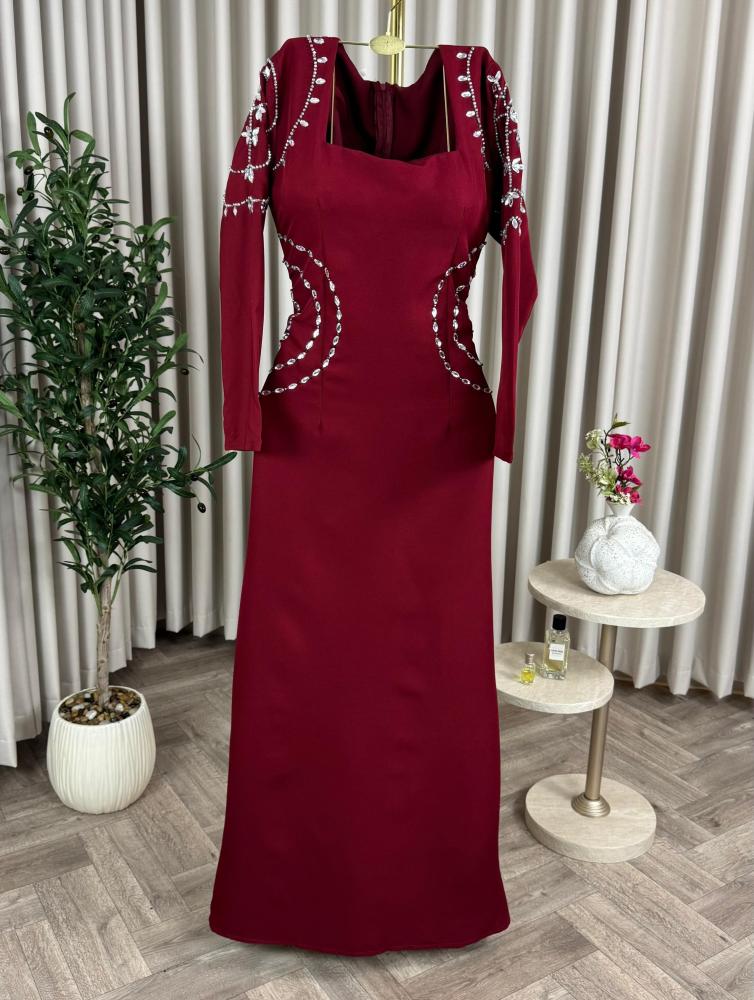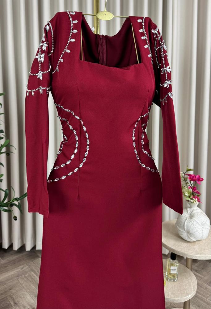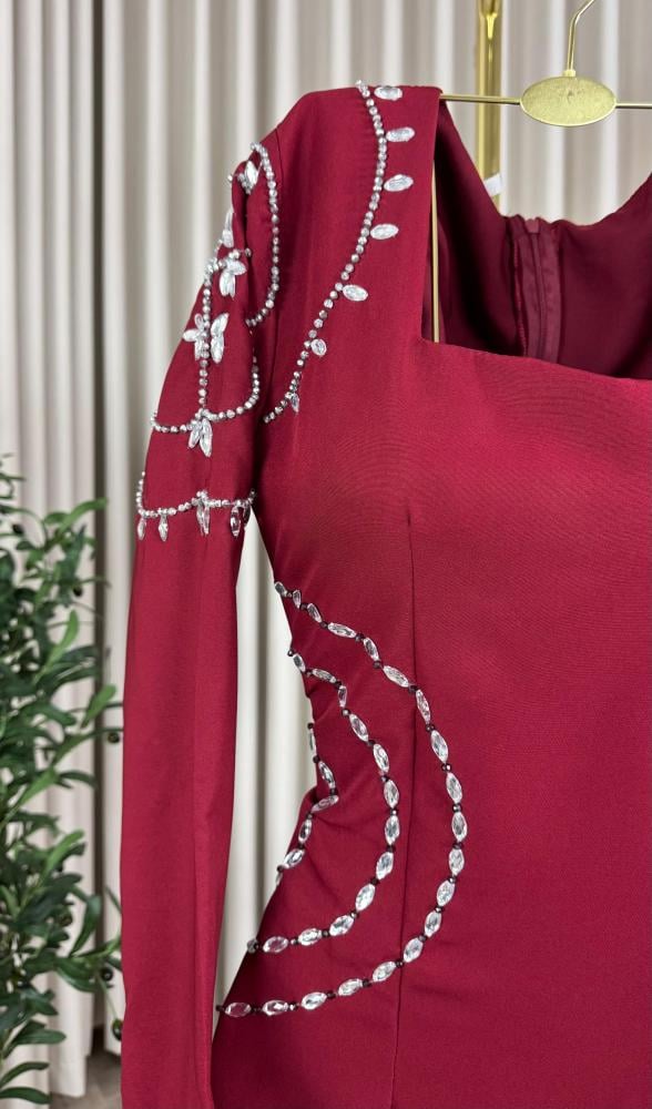 " نيفال " فستان أنيق بتفاصيل لافتة من تطريز كريستالي لامع موزّع بشكل ناعم على الأكمام والخصر، يضيف لمسة فخمة وأنثوية تلفت النظر.